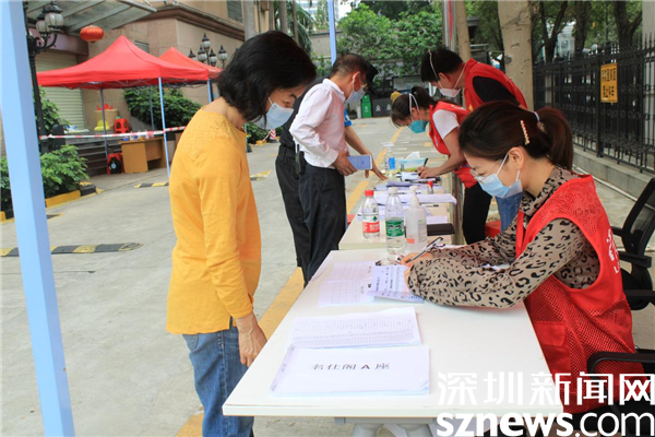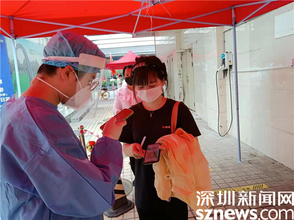 楊帆今年22歲,去年7月份大學(xué)畢業(yè)來到深圳。他說,一來深圳,就愛上了這座年輕的城市,希望自己能在這里開花結(jié)果。“現(xiàn)在深圳遇到了難處,作為年輕人,我沒理由不參與這場戰(zhàn)疫。”他在名仕閣小區(qū)配合同事陳大盛,在隊伍外圍維持秩序,核實(shí)每個居民的核酸記錄。