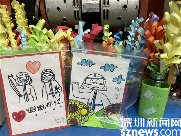 羅湖區(qū)蓮塘小學某班班長見醫(yī)護人員和義工志愿者日夜操勞,不辭辛苦,號召全班同學為防疫人員“送溫暖”。有的同學親手制作五顏六色的精美手折紙花,還有些同學別出心裁的繪制了“感謝大白”賀卡,禮物制作完成后,全班同學分頭行動,將手折紙花送到各核酸采樣點醫(yī)護人員和志愿者手中?!拔覀儙筒簧鲜裁?,做些力所能及的事情,為大哥哥大姐姐送去感動和力量,也是為抗疫做貢獻。”來自羅湖中醫(yī)院,在蓮塘村七巷小廣場支援的醫(yī)護人員們收到同學們送來的“禮物”非常開心,紛紛表示,雖然每天工作很辛苦,但能得到群眾尤其是孩子們的肯定十分幸福,禮物雖小,卻無比溫暖和感動。