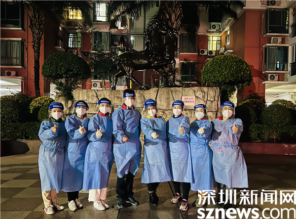 羅湖區(qū)婦聯(lián)副主席田林(左一)支援社區(qū)抗疫