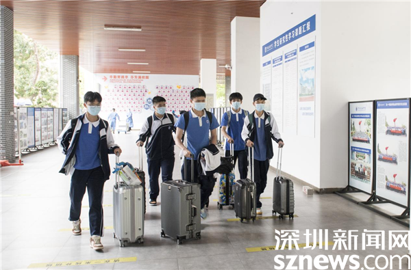 當(dāng)天早上,在羅湖高級(jí)中學(xué)校門(mén)口,學(xué)校老師、校醫(yī)、義工家長(zhǎng)等早早來(lái)到校門(mén)口,迎接同學(xué)們的到來(lái),每個(gè)同學(xué)都自覺(jué)戴好口罩,間隔一米距離,背著書(shū)包,拖著行李箱,進(jìn)入學(xué)校前出示校卡、粵康碼綠碼、行程卡以及24小時(shí)核酸陰性證明,并進(jìn)行衣物、行李、鞋底和手部消毒等。在經(jīng)歷了長(zhǎng)達(dá)一個(gè)多月的線上課程后,同學(xué)們終于返回闊別已久的校園。突然開(kāi)學(xué)是怎樣的心情?讓我們一起跟隨鏡頭直擊現(xiàn)場(chǎng)。