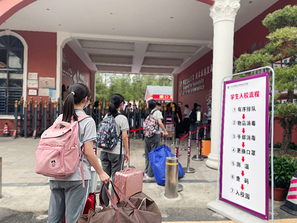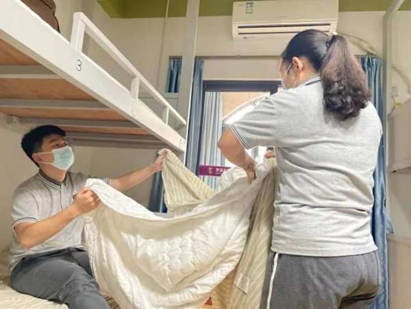 測溫、登記,回到闊別已久的宿舍,住宿的學生與宿管老師一起整理內務,共同打理學生在校園里的“小家”。