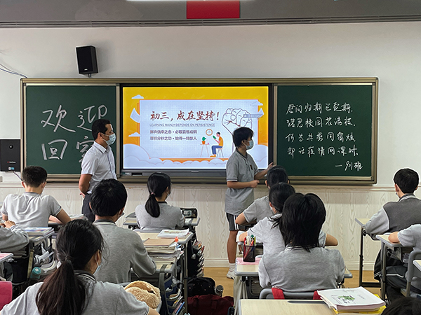 教室里,“歡迎回家”的字眼撥動學生們返校的心弦。班主任自創(chuàng)的一首無題小詩,將學生們的線上時光與線下相見相串聯(lián),潛移默化中過渡著焦慮,拉近著距離,蘊藏著無限激勵!