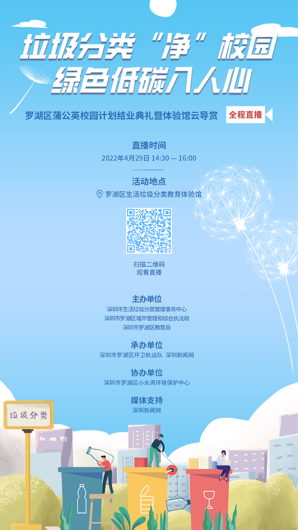 4月29日下午2:30—4:00,羅湖區(qū)首期蒲公英教師培訓(xùn)迎來(lái)結(jié)業(yè),羅湖區(qū)垃圾分類(lèi)體驗(yàn)館館經(jīng)歷多月重整布展后煥新重開(kāi),屆時(shí),深圳市生活垃圾分類(lèi)管理事務(wù)中心、羅湖區(qū)城市管理和綜合執(zhí)法局和羅湖區(qū)教育局共同舉辦垃圾分類(lèi)“凈”校園綠色低碳入人心——羅湖區(qū)蒲公英校園計(jì)劃結(jié)業(yè)典禮暨科普館云導(dǎo)賞活動(dòng),深圳新聞網(wǎng)將進(jìn)行全程直播,歡迎各位網(wǎng)友觀看。