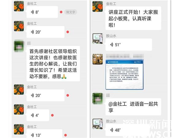 “大家下午好,今天我們講課的主題是《中老年人關(guān)節(jié)炎防治》,希望今天的講座能夠幫助到大家。”敖山水特意錄制了一段簡潔的視頻,在開課前向居民朋友打招呼。記者了解到,敖山水從事普外科臨床工作20多年,有著豐富的臨床經(jīng)驗(yàn)。開課后,微信群開始熱鬧了起來,敖山水將授課內(nèi)容通過語音發(fā)送,其助手整理成文案同步發(fā)到群上,實(shí)現(xiàn)音頻文字同步轉(zhuǎn)換。