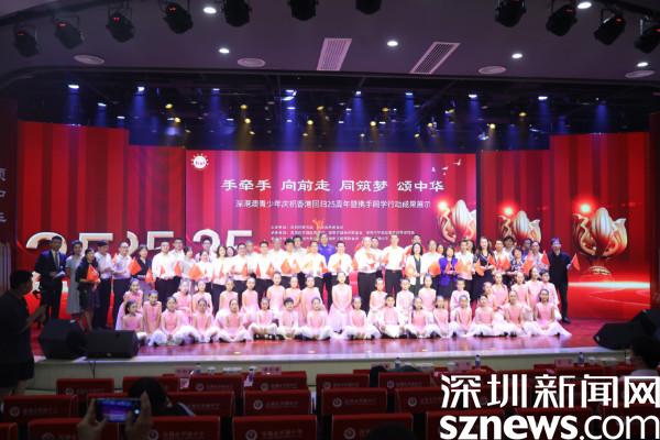 讀特客戶端·深圳新聞網(wǎng)2022年5月25日訊(記者 謝秋平 通訊員 周文干)5月25日下午,由深圳市教育局、深圳海外聯(lián)誼會主辦,深圳市羅湖區(qū)教育局、深圳羅湖海外聯(lián)誼會、深圳市羅湖區(qū)教育科學研究院承辦,香港深圳青年總會、深圳工程師聯(lián)合會、深圳市羅湖中學協(xié)辦的“深港澳青少年慶祝香港回歸25周年暨攜手同學行動成果展”在深圳市羅湖中學舉行?;顒右浴笆譅渴郑蚯白?,同筑夢,頌中華”為主題,展示了深港澳少年攜手同學行動的系列成果。深圳市委統(tǒng)戰(zhàn)部二級巡視員周文軍,深圳市委教育工委副書記、市教育局黨組成員楊平,羅湖區(qū)委常委、統(tǒng)戰(zhàn)部部長黃劍峰參加活動,香港教育局局長楊潤雄、澳門教育及青年發(fā)展局副局長黃嘉祺通過網(wǎng)絡(luò)連線方式參與活動。活動在羅湖教育云平臺全程直播,深港澳三地100多所學校通過線上直播觀看。