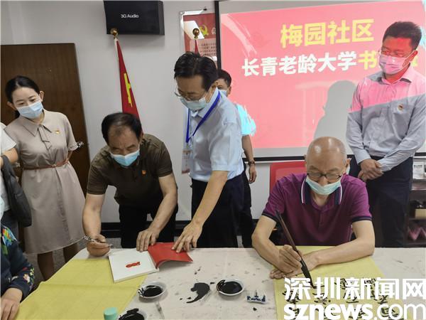 現(xiàn)場,還邀請(qǐng)了梅園社區(qū)長青老齡大學(xué)書法班鄒洪濤老師向大家講解,鄒洪濤既是書法班的老師,也是社區(qū)第十黨支部的支部書記,更是一名基建工程老兵。當(dāng)鄒洪濤介紹家喻戶曉的照片《升》的主人公正是他本人,更是讓王云虎對(duì)他豎起了大拇指。他激動(dòng)地表示,鄒洪濤的紅嶺大廈建筑工地上被定格的這張“頂天立地”的照片,是基建工程兵傾力投身改革開放的縮影,展示了深圳經(jīng)濟(jì)特區(qū)初創(chuàng)時(shí)蒸蒸日上的發(fā)展勢頭,是深圳建設(shè)初期時(shí)代張力的見證。