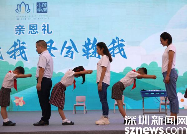 活動(dòng)由詩(shī)歌吟唱《鹿鳴》拉開了序幕?!案纲馍?,母兮鞠我”,熒幕上播放著子女和父母溫馨互動(dòng)的視頻,隨后上演的親恩禮,表達(dá)了子女對(duì)父母的深深愛意。當(dāng)主持人問到一位家長(zhǎng)時(shí),她眼含熱淚地說:“我此刻很激動(dòng)也很幸福,孩子給我捶背還給我寫卡片,感謝這次儀式感滿滿的活動(dòng),拉進(jìn)了我們家長(zhǎng)和孩子的距離,真的非常暖心!”
