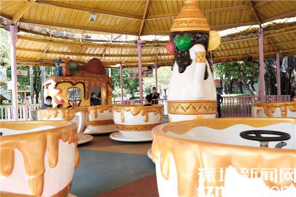 旋轉(zhuǎn)的“咖啡杯”上,不少父母帶著孩子在這里放聲大笑。