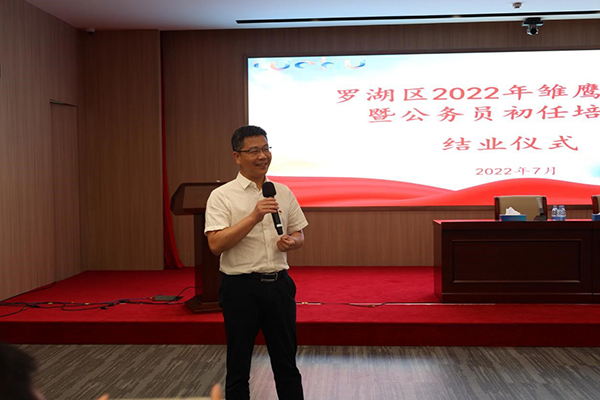 “公務員初任培訓只是‘雛鷹’成長的第一步?!备哐佑录恼Z學員,希望學員們以本次學習培訓為起點,將此次培訓中的所學、所獲,轉(zhuǎn)化為未來工作中的所用、所為,在今后的工作舞臺上迅速地成長成熟起來,不斷在解決實際問題中持續(xù)提高“七種能力”,為高質(zhì)量建設“灣區(qū)樞紐、萬象羅湖”積極作出積極貢獻。