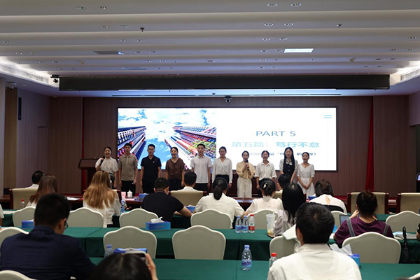 結(jié)業(yè)儀式現(xiàn)場,五組學員圍繞培訓的主題,通過不同的方式生動地展示了大家在這次“雛鷹訓練營”培訓中的所思所想所感所悟。第一組學員通過視頻和演講強調(diào)學思想、強能力、重實踐的重要性;第二組圍繞招商引資工作形成新聞聯(lián)播;第三組通過情景劇的形式記錄了信訪工作的24小時;第四組通過“民生面對面”為大望梧桐片區(qū)建設建言獻策;第五組改編的歌曲《最偉大的棚改》“聲”入人心。大家紛紛表示,通過此次培訓學習,對以后的工作有著重要的指導作用。