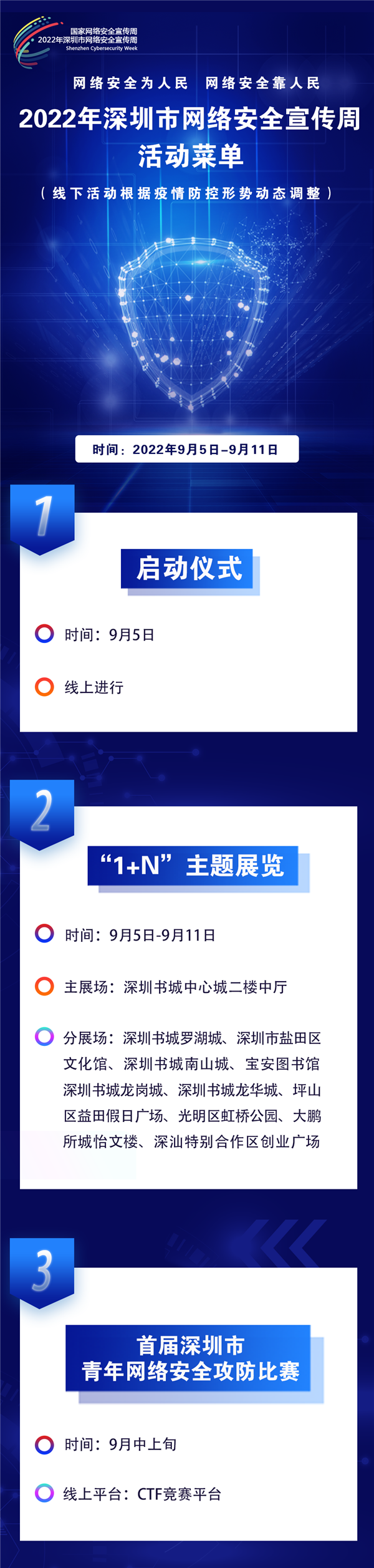 據(jù)介紹,2022年羅湖區(qū)網(wǎng)絡(luò)安全宣傳周將采取線上與線下相結(jié)合、傳統(tǒng)媒體與新媒體齊發(fā)力的方式,圍繞“3+N”的形式開(kāi)展:“3”包括舉辦一場(chǎng)主題展覽、拍攝一批微電影及策劃一系列新媒體創(chuàng)意作品,“N”包括各單位圍繞網(wǎng)絡(luò)安全宣傳周開(kāi)展的一系列活動(dòng)。