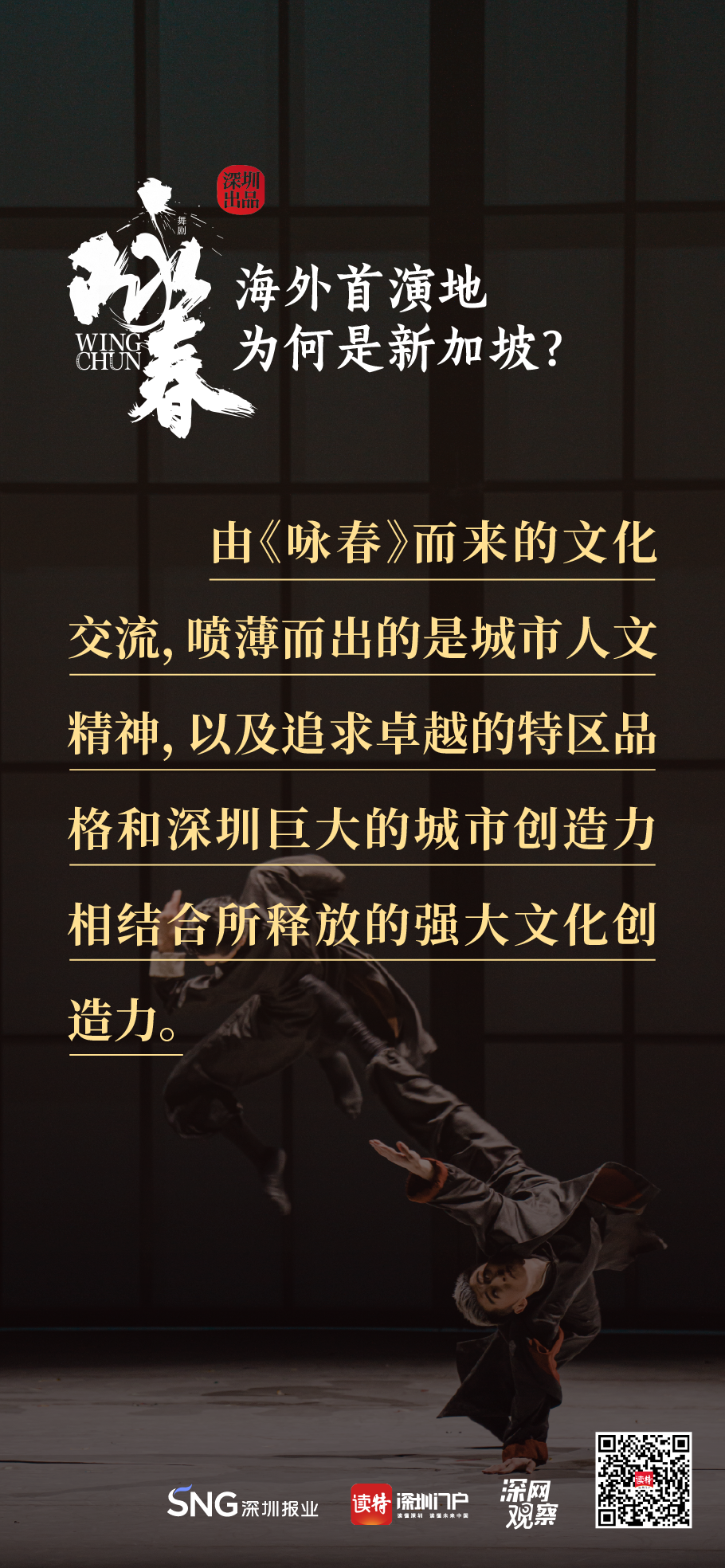 “新加坡與中國(guó)深圳血脈相連、文化相親,相信這一次的《詠春》能喚醒更多華人的文化基因!”深圳出品的原創(chuàng)舞劇《詠春》,從今年3月開(kāi)啟全國(guó)首輪巡演以來(lái),已經(jīng)走遍20多個(gè)城市,巡演很快達(dá)100場(chǎng),場(chǎng)場(chǎng)火爆,一票難求,成為國(guó)內(nèi)歌舞劇市場(chǎng)的現(xiàn)象級(jí)佳作。據(jù)媒體報(bào)道,9月27日-30日,《詠春》受邀到新加坡濱海藝術(shù)中心連演4場(chǎng),開(kāi)啟海外演出。9月16日,新加坡《聯(lián)合早報(bào)》發(fā)表長(zhǎng)文《中國(guó)舞?。荚伌海矩灤┈F(xiàn)代與傳統(tǒng)》稱(chēng):“這部舞劇不僅火遍神州,自從要在新加坡公演的消息傳出后,也成為獅城華人圈的熱門(mén)話題”。