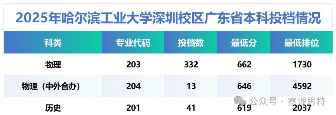 哈爾濱工業(yè)大學(xué)(深圳)在物理類投檔中表現(xiàn)尤為突出,以662分的投檔最低分和1730的全省最低排位位居深圳高校榜首,同時(shí)也是全省物理類投檔分?jǐn)?shù)最高的院校。歷史類投檔最低分619分,排位為2037,展現(xiàn)了其文理均衡的強(qiáng)勁實(shí)力。
