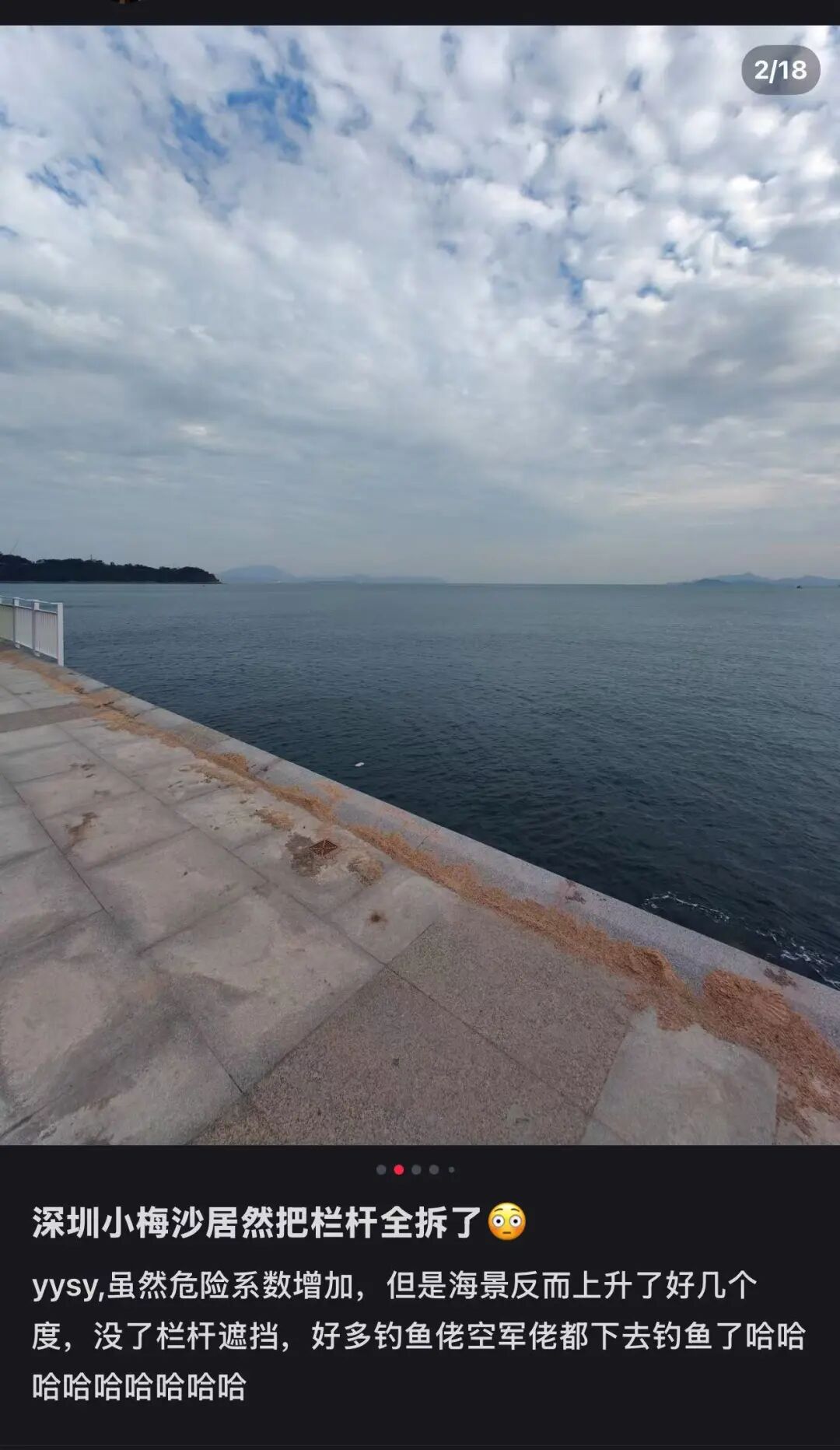近日,有網友發(fā)帖稱,深圳小梅沙海濱棧道護欄被拆除,無遮擋海景雖獲好評,但有不少人在海邊垂釣,引發(fā)公眾對于安全問題的關注。為此,鹽田區(qū)相關職能部門回應稱,護欄拆除系臺風損毀后修復所需,并提醒廣大市民遠離施工封閉區(qū)域,確保自身安全。