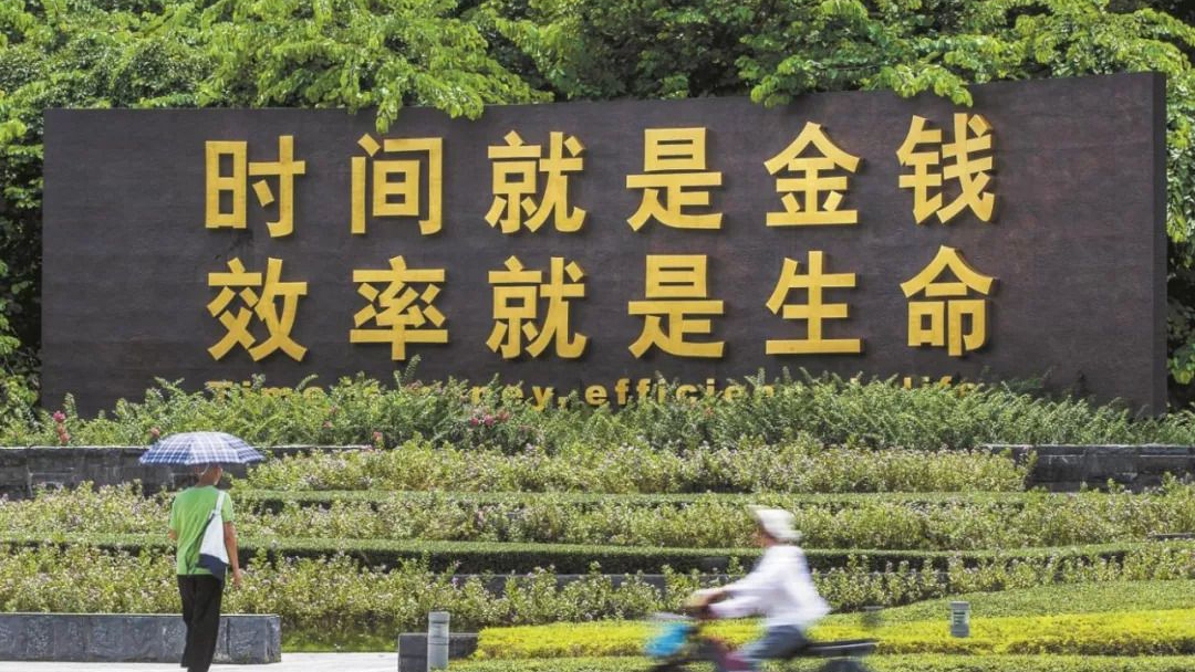 蛇口時(shí)間廣場上矗立著“時(shí)間就是金錢,效率就是生命”標(biāo)語牌