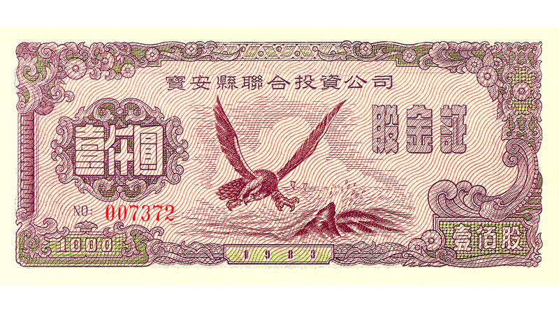 1983年中國寶安集團(tuán)發(fā)行的新中國第一張股票