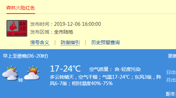 日間空氣干燥 深圳市森林火險紅色預警信號生效中