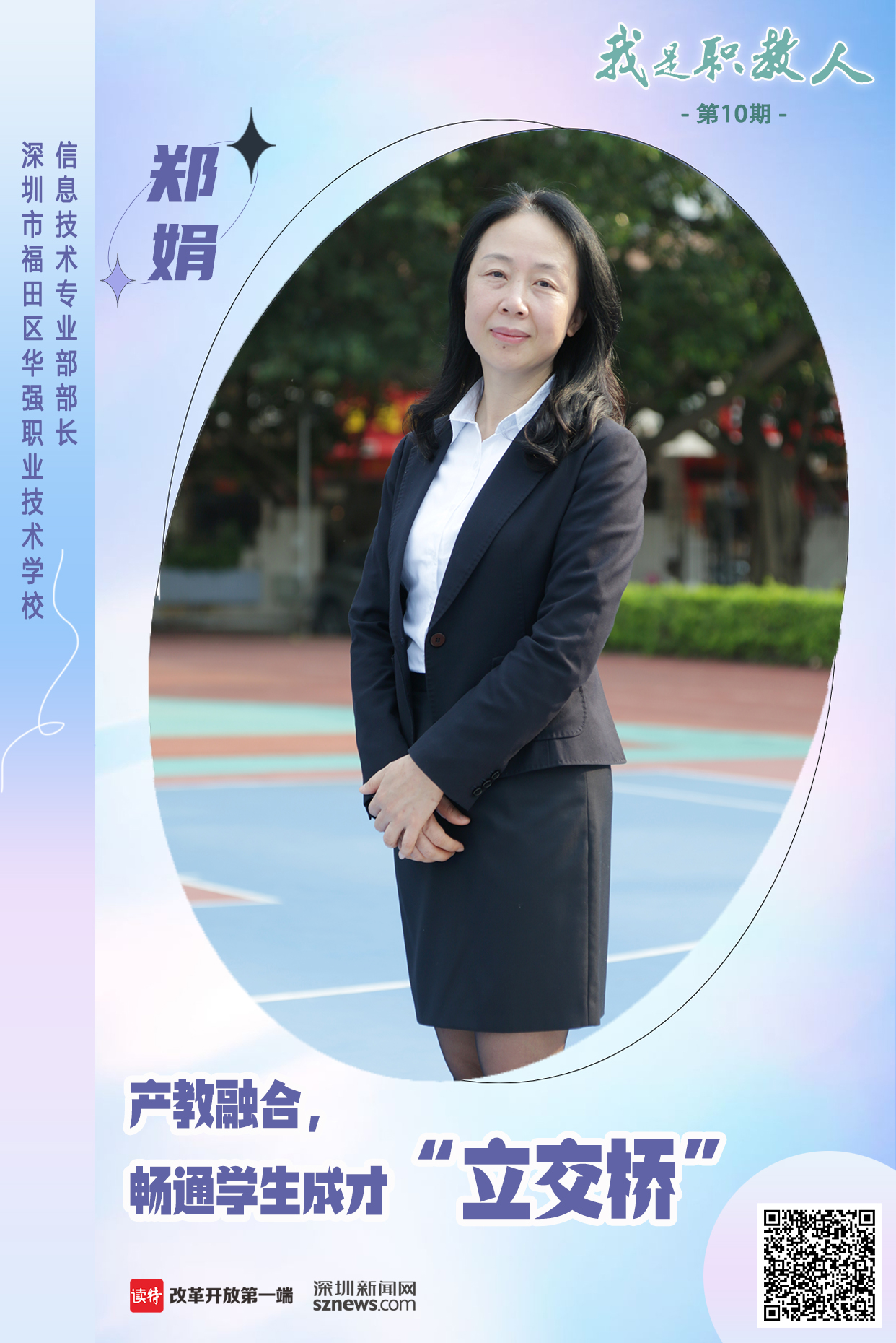 父母的耳濡目染,讓她選擇成為一位教師;職業(yè)教育發(fā)展的重要性,讓她成為了一名職教人,她是深圳市福田區(qū)華強(qiáng)職業(yè)技術(shù)學(xué)校(以下簡(jiǎn)稱“華強(qiáng)職?!保┬畔⒓夹g(shù)專業(yè)部部長(zhǎng)鄭娟。