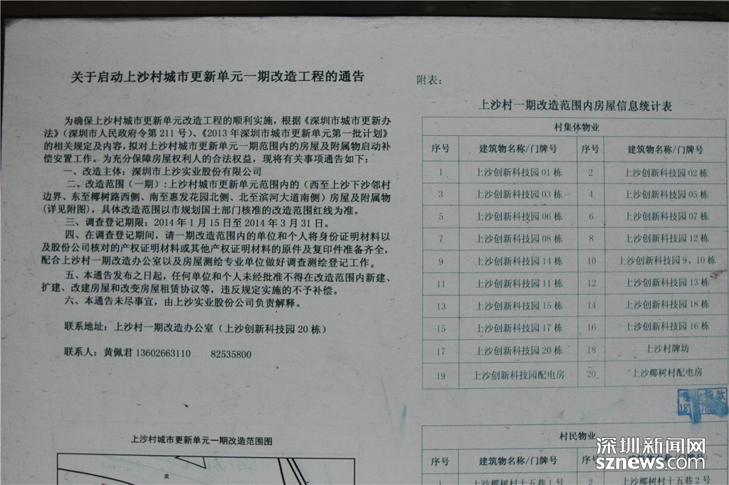 上沙村實(shí)業(yè)股份公司前的一期改造工程的宣傳通告