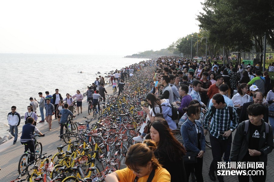 鵬城眼|深圳人假日勤動(dòng)腳 共享單車“擠爆”深圳灣