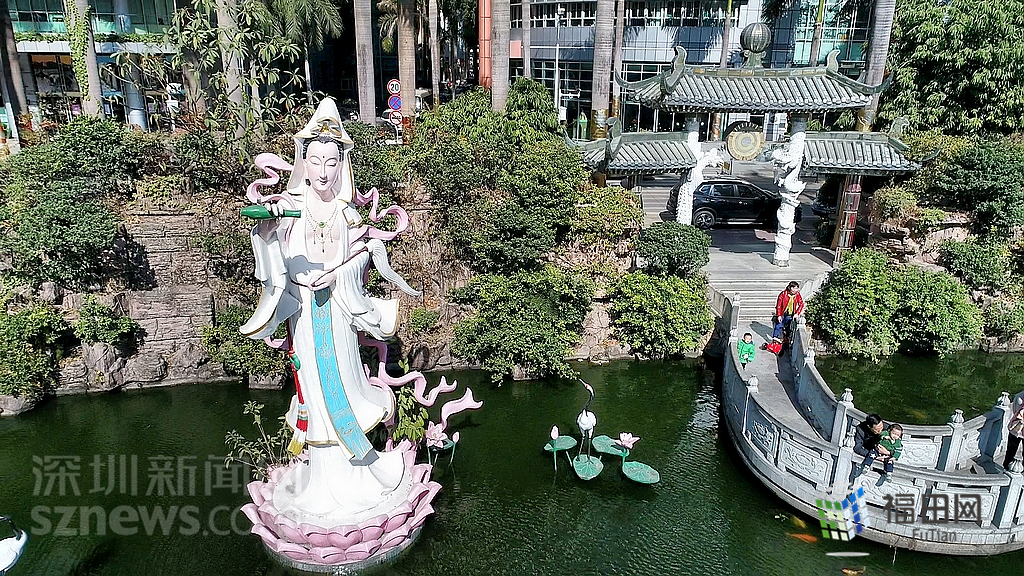 下沙文化廣場前鯉魚池的觀音像。