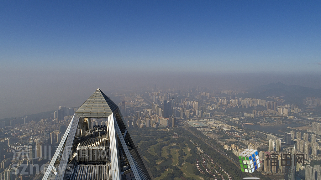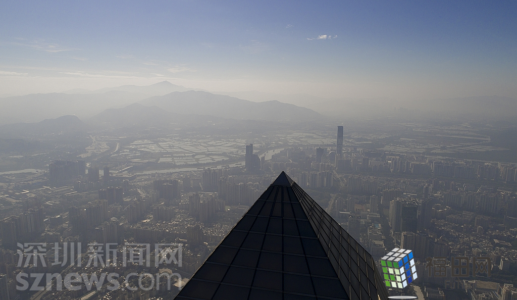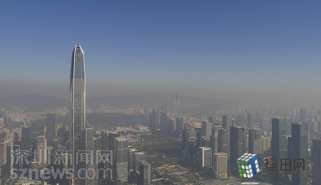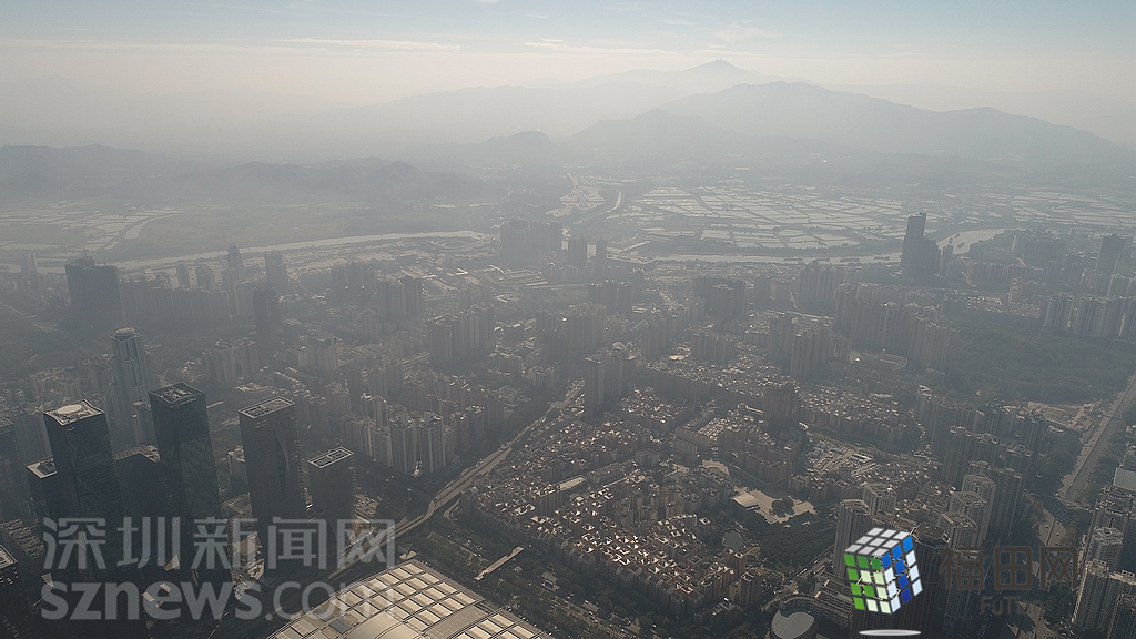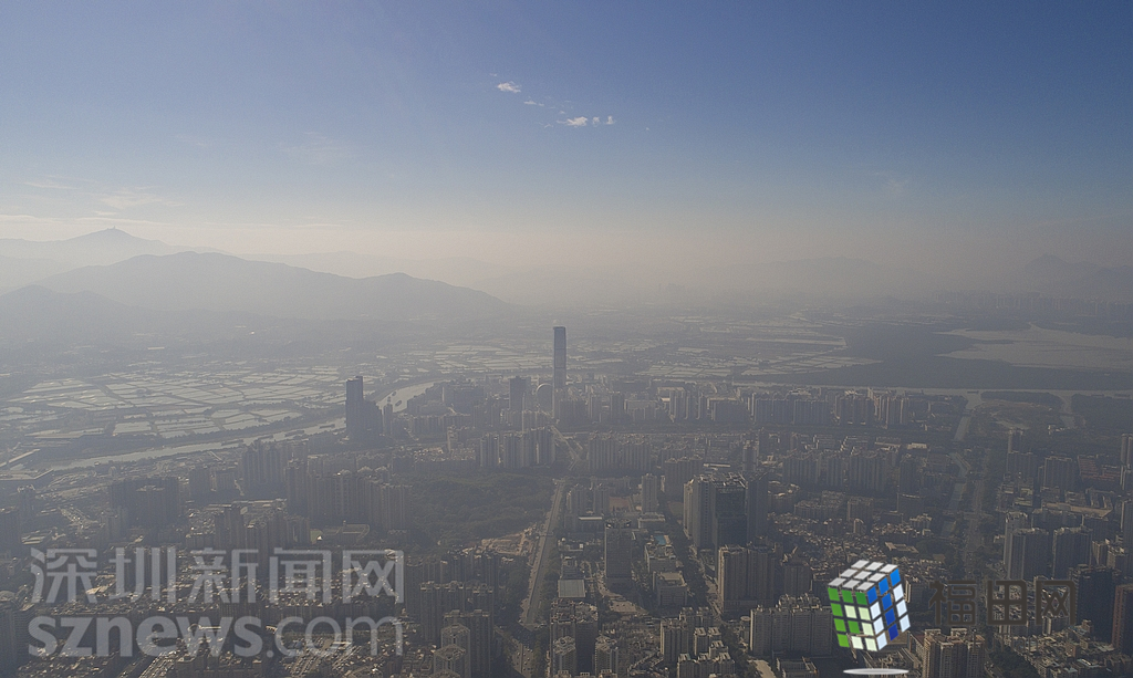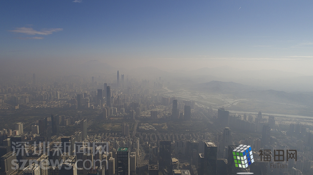 1月18日上午,記者操控?zé)o人機(jī)俯瞰深圳中心區(qū)發(fā)現(xiàn),灰霾將天空“割裂”成一道涇渭分明的界線,把城市籠罩得如同一個(gè)充滿霧靄的森林。從平安金融大廈的上空遠(yuǎn)眺,西南面的深圳灣在灰霾的籠罩下變成了一片“沙漠”,東面的京基一百幾乎被灰霾“吞沒(méi)”,北邊平時(shí)肉眼可看的梅林山也因?yàn)槟芤姸容^低變得若隱若現(xiàn),南面的米埔濕地也被云遮霧繞。