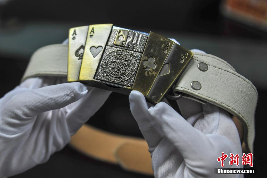 1月30日,遼寧沈陽,沈陽桃仙國際機(jī)場安檢中心工作人員展示腰帶打火機(jī)。當(dāng)日在沈陽桃仙國際機(jī)場,展示了近期被查獲的手機(jī)打火機(jī)、口紅打火機(jī)、腰帶打火機(jī)等各類打火機(jī)10余款。2018年春運(yùn)工作從2月1日即將開始,為確保機(jī)場春運(yùn)工作安全、正常、有序,沈陽桃仙國際機(jī)場安檢中心將加大檢查力度,嚴(yán)格執(zhí)行“三品”查堵制度,重點(diǎn)查處夾帶易燃易爆危險(xiǎn)品乘坐飛機(jī)。中新社記者于海洋 攝