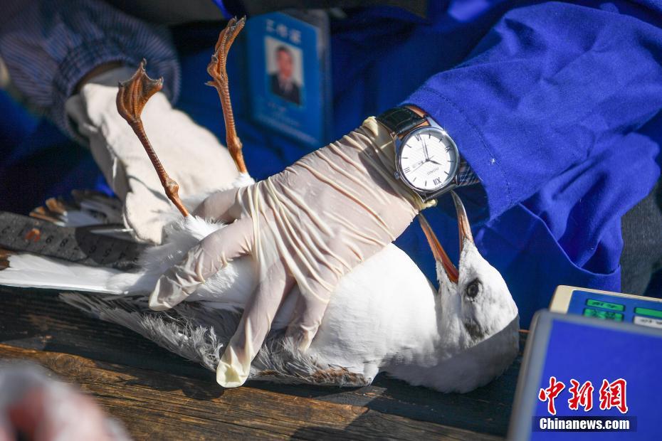 工作人員介紹,環(huán)志的目的在于了解紅嘴鷗種群數(shù)量變化情況及身體狀況,更好地為候鳥遷徙研究和野生動(dòng)物疫源疫病監(jiān)測工作服務(wù)。中新社記者劉冉陽 攝