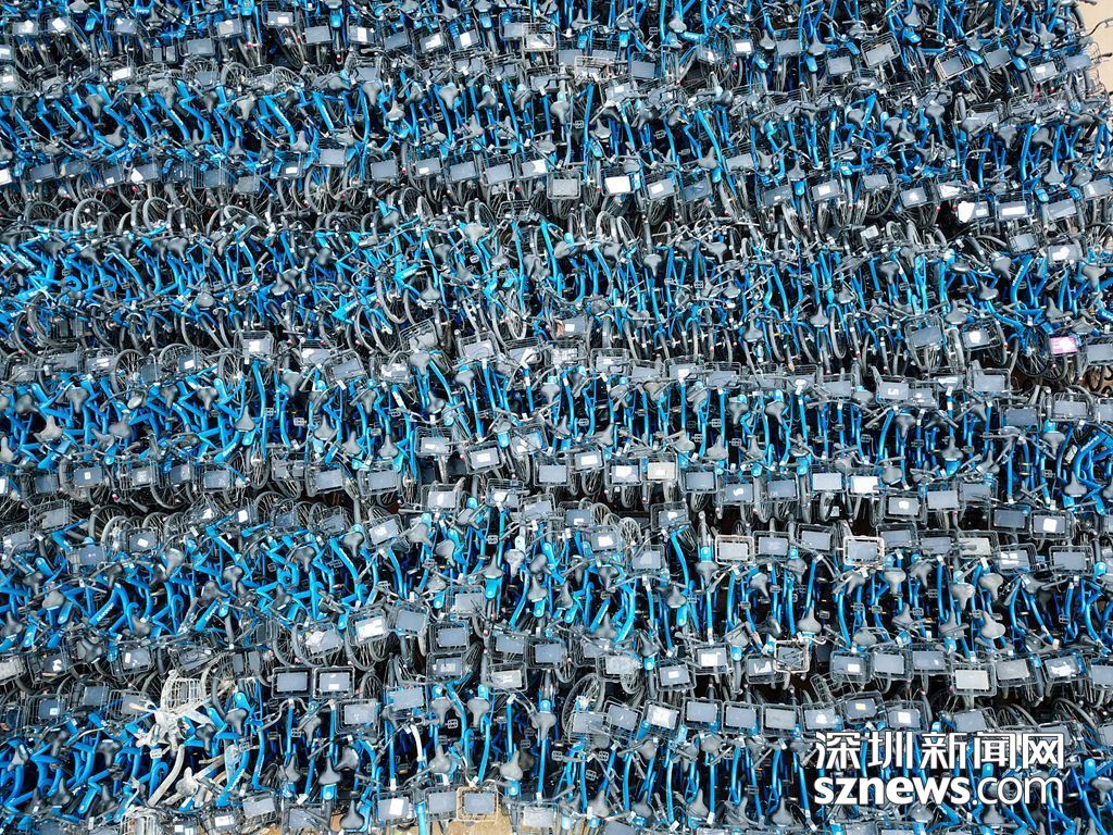 圖為深圳市場(chǎng)投放的小藍(lán)單車目前都集中存放在龍崗區(qū)某處
