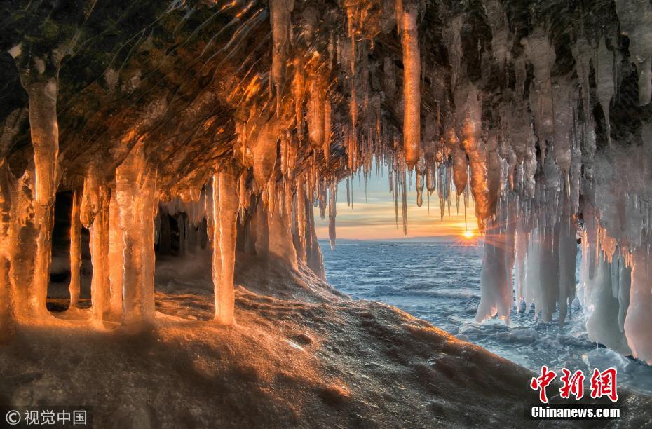 俄羅斯西伯利亞貝加爾湖,冰洞里成千上萬的冰錐營造了一種超現(xiàn)實的美景。39歲的攝影師安德烈(Andrey Grachev)在世界上最深的湖泊旁發(fā)現(xiàn)了這些洞穴。這些冰錐就像倒置的哥特式建筑的尖頂,有的甚至有10英尺(約3米)長。安德烈來自莫斯科,他說這一景觀是暴風雨造成的,大量的水滲入洞內(nèi)后在低溫中被立刻凍住。圖片來源:視覺中國