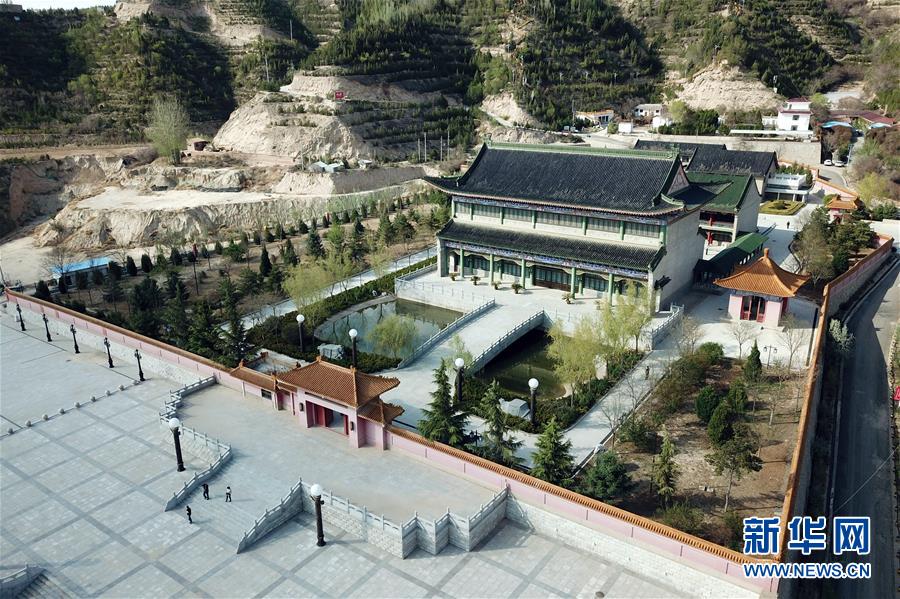 這是在蘭州黃河北岸拍攝的甘肅省圖書館文溯閣《四庫全書》藏書館全景(4月22日無人機(jī)拍攝)。