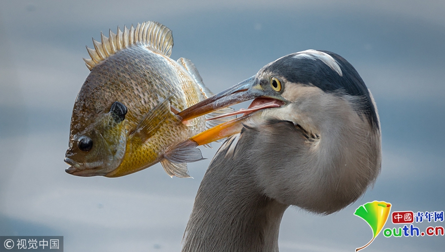 當(dāng)?shù)貢r(shí)間2018年1月29日,美國(guó)田納西州納什維爾的拉德諾湖州立公園,一只大藍(lán)鷺刺穿了一條“巨大的”藍(lán)鰓魚,一口氣把它吞下。