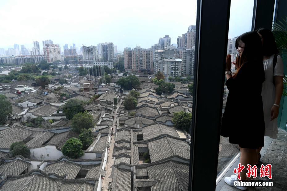 7月8日,從高處鳥瞰有“中國明清建筑博物館”之稱的福州三坊七巷,蔚為壯觀。位于福州中心城區(qū)的三坊七巷擁有38公頃的完整保護(hù)范圍,為國內(nèi)現(xiàn)存規(guī)模較大、保護(hù)較為完整的歷史文化街區(qū),是全國為數(shù)不多的古建筑遺存之一,有“中國城市里坊制度活化石”和“中國明清建筑博物館”的美稱。中新社記者王東明 攝