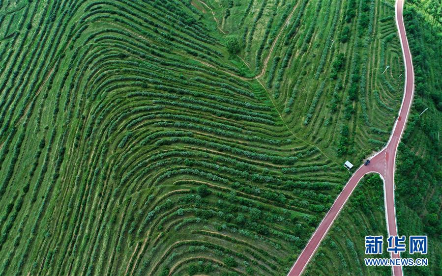 寧夏固原市彭陽縣金雞坪梯田公園(7月16日無人機拍攝)。新華社記者 王鵬 攝