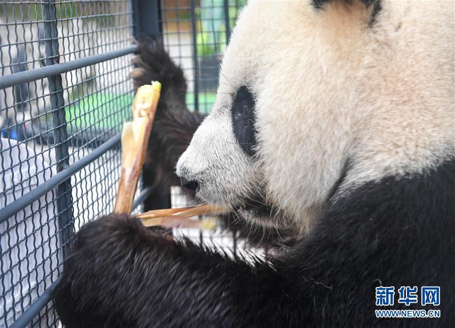 8月20日,大熊貓“夢夢”在吃竹筍。 新華社記者 許暢 攝