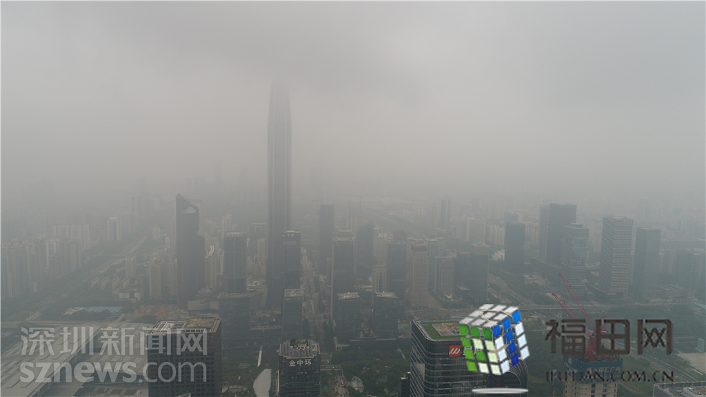 整個(gè)福田中心區(qū)都籠罩在灰霾之中。