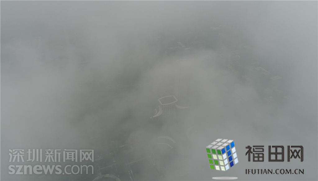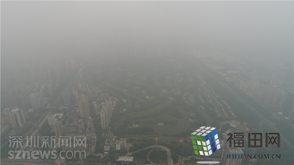 從平安大廈頂樓往下看,深圳高爾夫球場(chǎng)的綠地和湖泊已經(jīng)分辨不清了,能見(jiàn)度降到1公里。