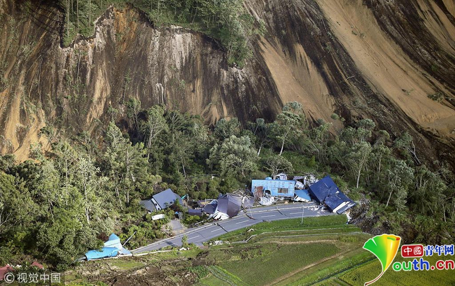 據(jù)報道,這次強震是北海道自震度等級修改的1996年以來首次發(fā)生震度6強的地震,也是日本國內(nèi)繼2016年熊本地震之后再次發(fā)生震度6強以上地震。圖為山體滑坡現(xiàn)場受損的房屋。
