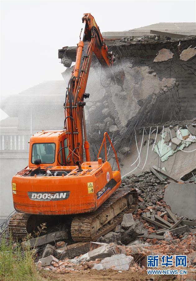 8月14日,大型機(jī)械對西安市鄠邑區(qū)蔣村鎮(zhèn)的違建別墅進(jìn)行拆除。