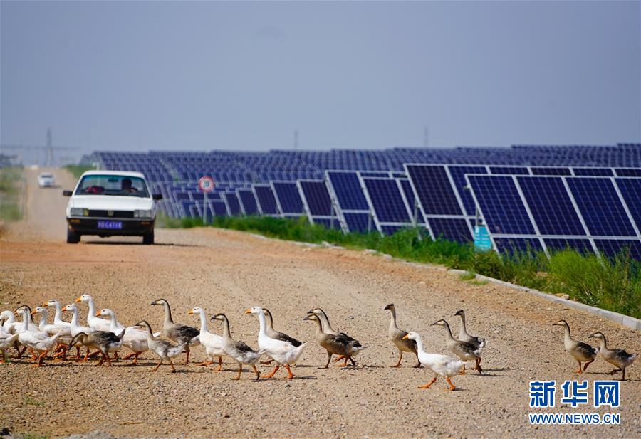 這是內(nèi)蒙古鄂爾多斯市杭錦旗庫布其沙漠生態(tài)太陽能光伏光熱治沙發(fā)電綜合示范地(8月1日攝)?!鞍迳习l(fā)電、板下種草、板間養(yǎng)殖”,目前該太陽能發(fā)電項目治沙面積達到了13.3平方公里,每年發(fā)電5億千瓦時,實現(xiàn)銷售收入4.5億元。其社會效益、生態(tài)效益、民生效益、經(jīng)濟效益十分顯著。