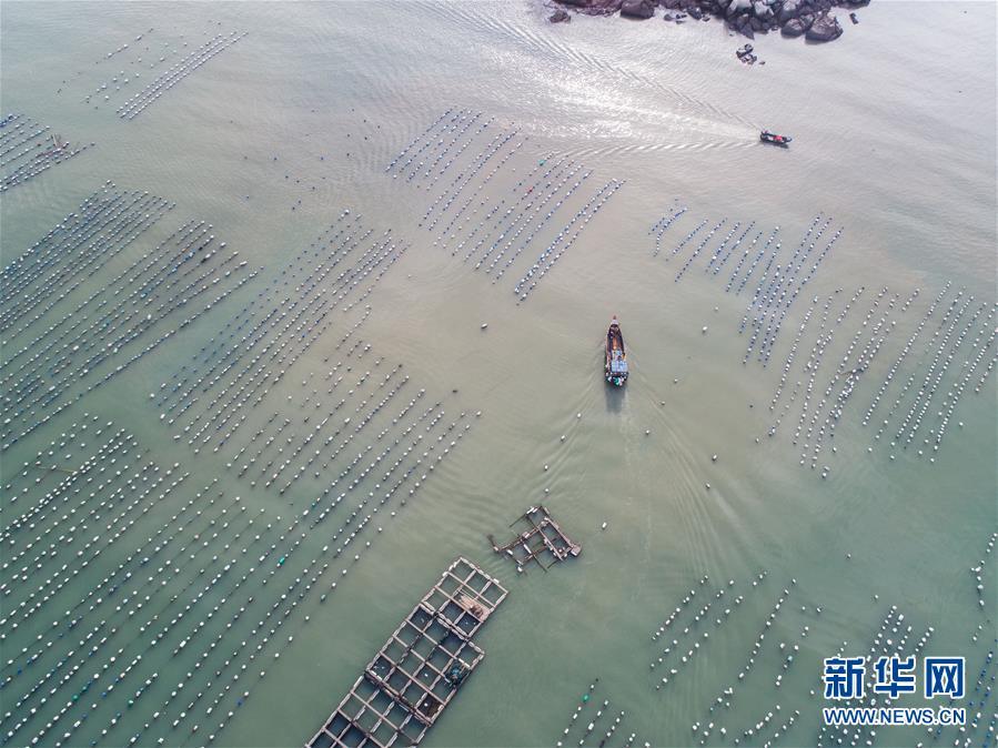 8月19日,空中俯瞰南麂島海域內(nèi)的“海上牧場”養(yǎng)殖區(qū)(無人機(jī)拍攝)。進(jìn)入8月,浙江省溫州市平陽縣南麂鎮(zhèn)海域上大片的大黃魚、貽貝等特色海產(chǎn)品養(yǎng)殖區(qū)域迎來豐收季節(jié),養(yǎng)殖戶們駕駛漁船在養(yǎng)殖區(qū)海域進(jìn)行打撈收獲,在碧海藍(lán)天下構(gòu)成了一幅“海上牧場”的美麗豐收景象。近年來,南麂鎮(zhèn)政府引導(dǎo)漁民養(yǎng)殖戶充分發(fā)揮“靠海吃?!钡馁Y源優(yōu)勢,大力發(fā)展海洋養(yǎng)殖經(jīng)濟(jì)和海島旅游經(jīng)濟(jì),實(shí)現(xiàn)了南麂由“生態(tài)美”向“產(chǎn)業(yè)美”,“產(chǎn)業(yè)美”向“經(jīng)濟(jì)美”的轉(zhuǎn)變。同時(shí)該鎮(zhèn)堅(jiān)持以大黃魚、貽貝等為特色產(chǎn)業(yè)支撐,精準(zhǔn)發(fā)展高效海洋養(yǎng)殖業(yè),重點(diǎn)培養(yǎng)一批新型職業(yè)漁民,依靠專業(yè)技術(shù)支持,實(shí)現(xiàn)深海仿生養(yǎng)殖,讓好生態(tài)造就好品質(zhì),重點(diǎn)打造南麂養(yǎng)殖品牌,組建營銷網(wǎng)絡(luò),拓展特色海產(chǎn)品市場。新華社記者 徐昱攝