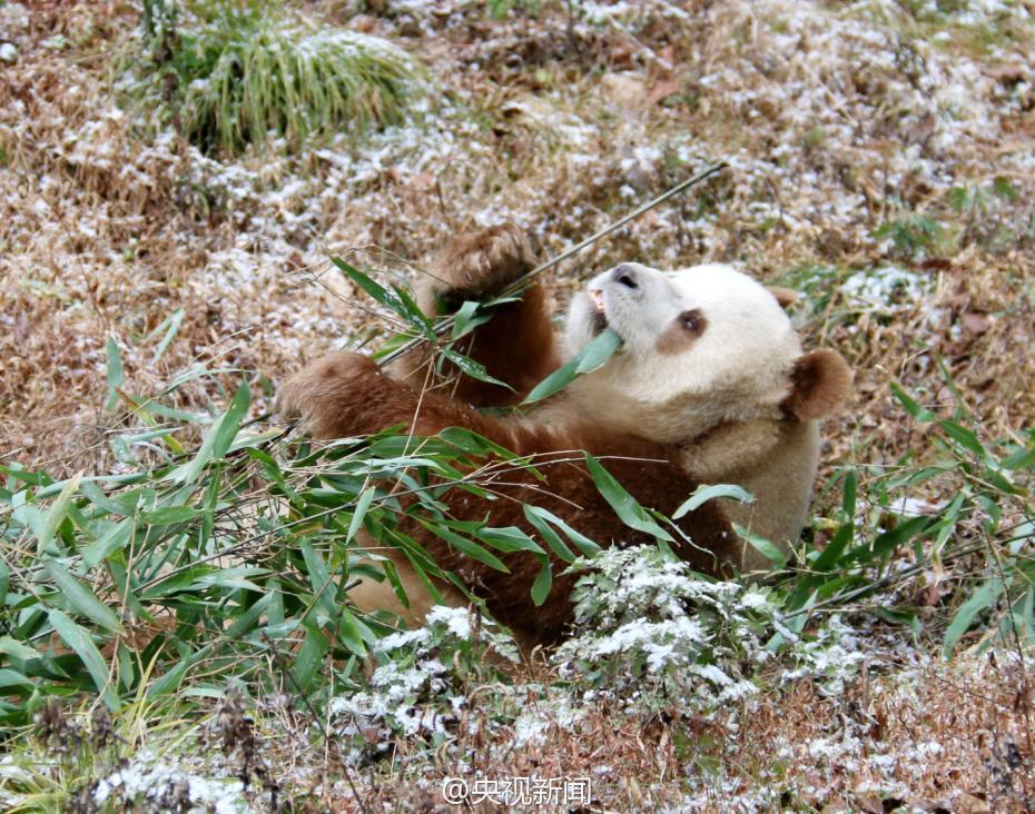 秦嶺大熊貓野化培訓(xùn)佛坪基地,7歲的棕色大熊貓七仔是目前全世界唯一能看到的棕色大熊貓活體。今年是它在基地過(guò)的第二個(gè)冬天,每逢下雪,七仔就興奮地滿(mǎn)園子跑,變身“雪花熊”。央視記者李志 王志杰 圖片來(lái)源:央視新聞官方微博