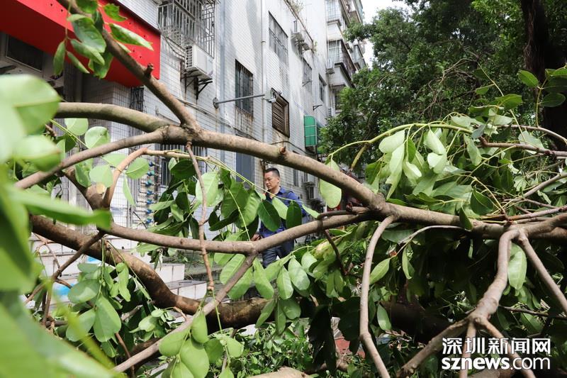 在蓮花北村靠近北環(huán)中學(xué)的小路,記者注意到拉起警戒線,有多株樹木經(jīng)不住大風(fēng)考驗(yàn),已投降就地倒下。