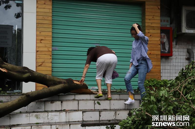 2018年9月17日10點(diǎn)03分,商報(bào)東二路,兩位市民走過(guò),一邊是倒塌的樹木。(攝影:楊浩翰)
