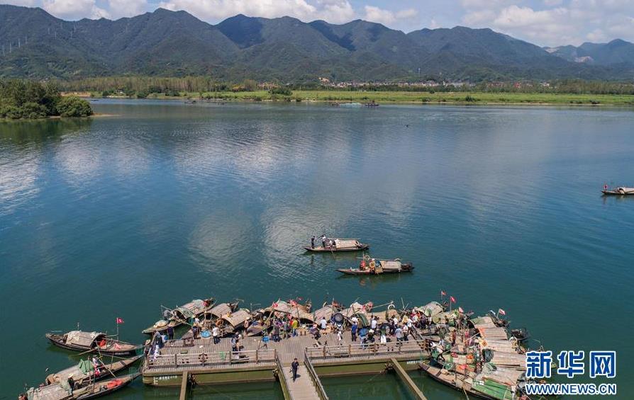 9月18日,漁民們乘坐漁船在富春江里捕撈江鮮(無人機(jī)拍攝)。 當(dāng)日,浙江省杭州市富陽區(qū)場口鎮(zhèn)東梓關(guān)村開啟“江鮮大會”,數(shù)十艘小漁船一起駛向富春江江面,拉開了秋分節(jié)氣前捕撈江鮮的序幕。 東梓關(guān)村有著1000多年歷史,水陸交通方便,自古就是富春江南岸重要的商貿(mào)集散地,素有富春江“東流第一關(guān)”之稱。隨著近年來美麗鄉(xiāng)村建設(shè)的推進(jìn),東梓關(guān)村著力打造白墻黛瓦的江南民居,同時依托富春江豐富的江鮮魚類資源,在秋季舉辦特色“江鮮大會”,通過舉辦江鮮捕撈體驗、江鮮第一鍋開鍋、百鮮宴、鄉(xiāng)村小型音樂會、農(nóng)家菜大賽等活動,吸引各地游客前來感受富春江漁民豐收的喜悅和江南千年古村的獨(dú)特魅力,推動鄉(xiāng)村特色旅游發(fā)展。 新華社記者徐昱攝