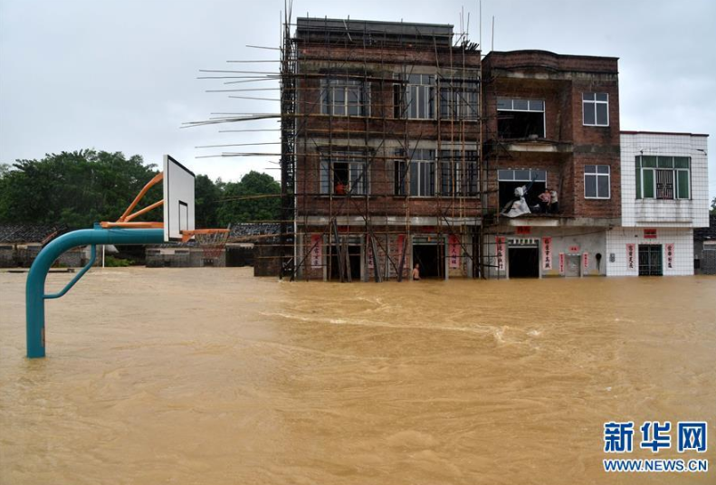 9月18日,陽春市漠陽江畔的街道被洪水淹沒。 新華社記者 周科 攝