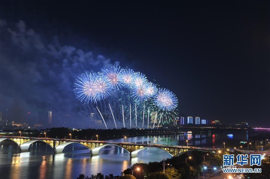 這是9月19日拍攝的長(zhǎng)沙湘江橘子洲焰火晚會(huì)現(xiàn)場(chǎng)。新華社記者 龍弘濤 攝