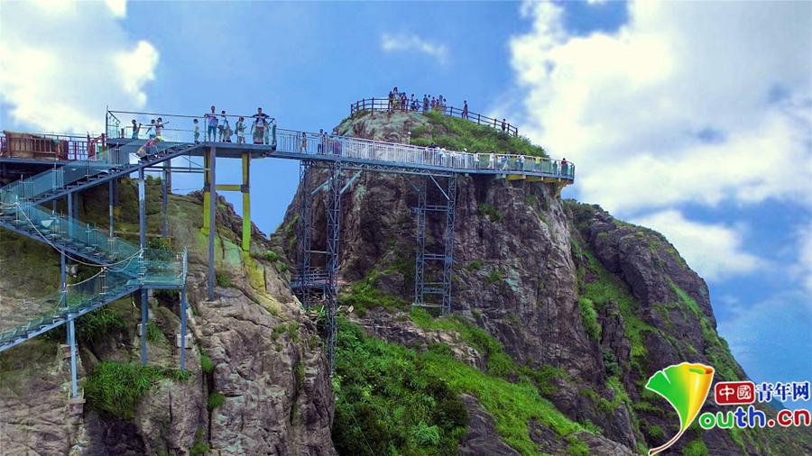 經(jīng)過一年的建設(shè),位于素有“嶺南第一險峰”與“南粵小華山”之稱的廣東清遠連山金子山,有一條玻璃天梯建成。下個月10日,玻璃天梯將正式對游客開放。