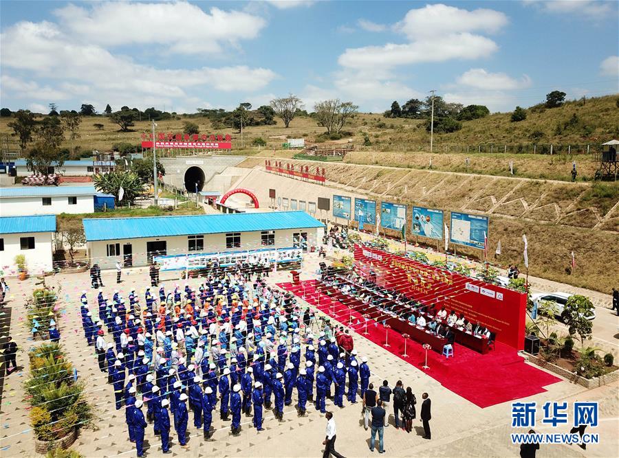 這是9月24日拍攝的內(nèi)羅畢-馬拉巴標(biāo)軌鐵路(內(nèi)馬鐵路)項(xiàng)目第一期恩貢隧道貫通儀式現(xiàn)場(航拍照片)。 由中國交通建設(shè)股份有限公司承建的內(nèi)羅畢-馬拉巴標(biāo)軌鐵路(內(nèi)馬鐵路)項(xiàng)目第一期恩貢隧道24日實(shí)現(xiàn)貫通。據(jù)悉,恩貢隧道全長約4.5公里,是目前東非地區(qū)最長的鐵路隧道。它的建成標(biāo)志著內(nèi)馬鐵路項(xiàng)目第一期取得了突破性進(jìn)展。 新華社記者王騰攝