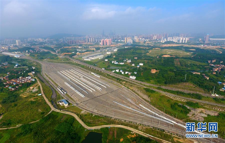 這是廣西南寧動車所內(nèi)準備發(fā)往各地的動車組列車(6月18日無人機拍攝)。 廣西壯族自治區(qū)成立60年來,鐵路建設(shè)發(fā)生翻天覆地的變化。來自中國鐵路南寧局集團有限公司的數(shù)據(jù)顯示,1958年廣西鐵路總里程為1346.3公里,如今廣西鐵路總里程達5191公里。廣西與周邊相鄰省份間實現(xiàn)動車“公交化”開行。此外,北部灣港—重慶班列、東盟海產(chǎn)品冷鏈班列、“百色一號”果蔬專列等的開通和運營,強化了鐵路供給的針對性和有效性。鐵路成為助推廣西經(jīng)濟社會快速發(fā)展的“大動脈”。 新華社記者黃孝邦攝
